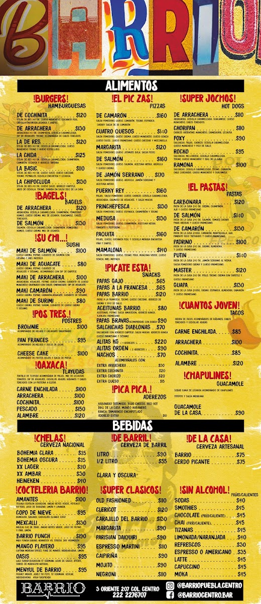 Welcome to Barrio Bar Mexican, a vibrant culinary gem nestled in the historic heart of Puebla. This enchanting venue offers an inviting atmosphere complemented by an impressive menu that celebrates the rich flavors of Mexican cuisine. You can anticipate a delightful array of carefully crafted cocktails and a diverse beer selection that caters to all tastes.